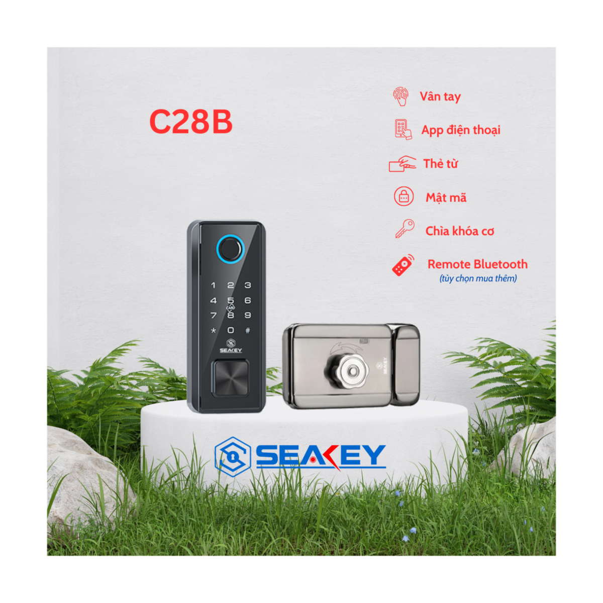 * Thông số kỹ thuật khóa cổng vân tay Seakey C28B: