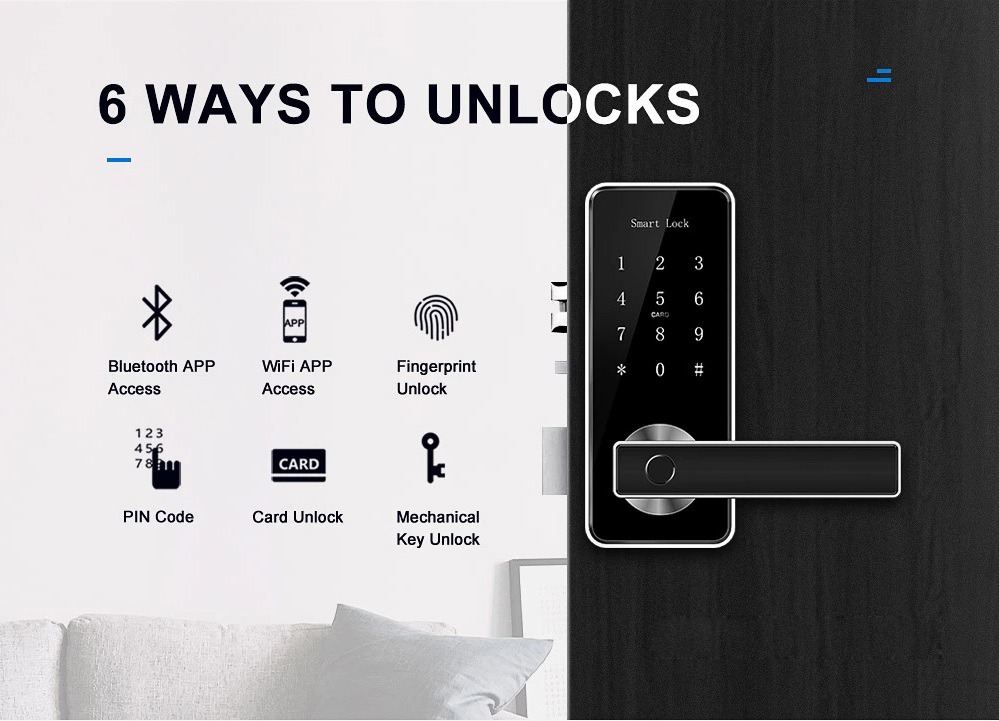 - 5 cách mở khóa: App điện thoại + 300 vân tay, mật mã, card Mifare và 2 chìa khóa cơ chống sao chép